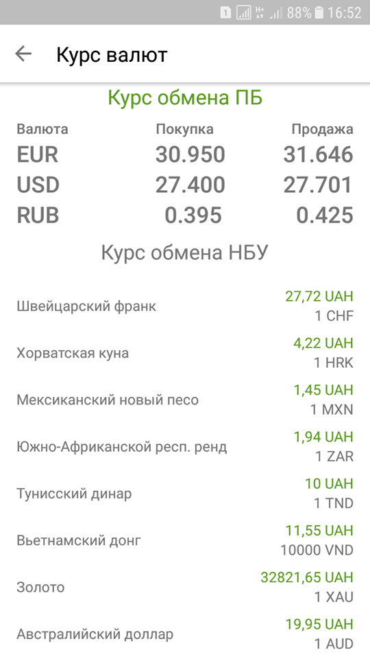 Курсы обмена "Приватбанка". Скриншот: Cтрана.ua