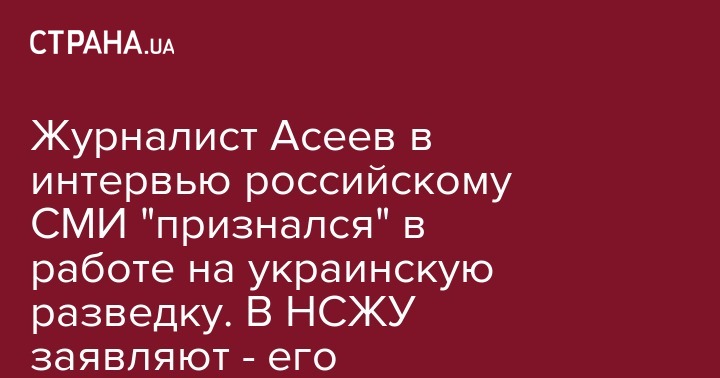 Журналист Асеев в интервью российскому СМИ "признался" в работе на украинскую разведку. В НСЖУ заявляют - его принудили оговорить себя