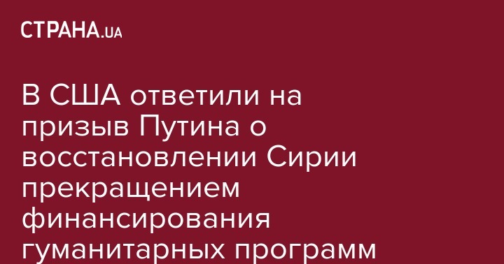В США ответили на призыв Путина о восстановлении Сирии прекращением финансирования гуманитарных программ