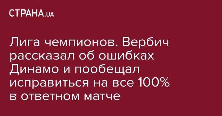 Лига чемпионов. Вербич рассказал об ошибках Динамо и пообещал исправиться на все 100% в ответном матче