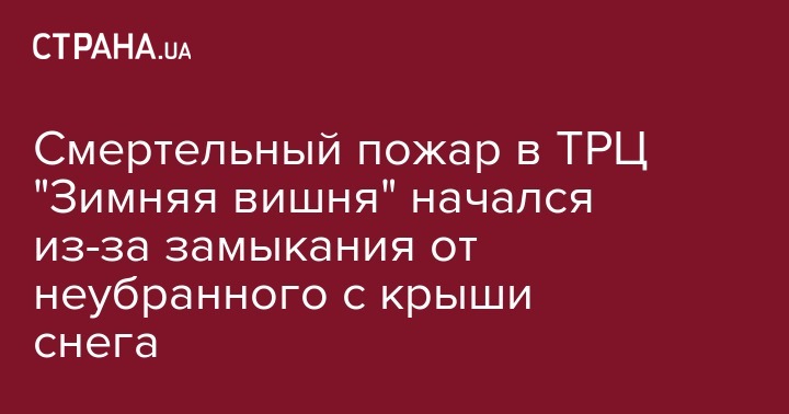 Смертельный пожар в ТРЦ "Зимняя вишня" начался из-за замыкания от неубранного с крыши снега