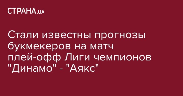 Стали известны прогнозы букмекеров на матч плей-офф Лиги чемпионов "Динамо" - "Аякс"