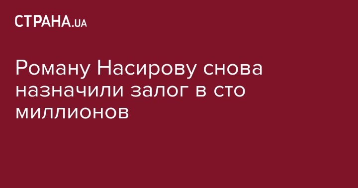 Обвиняемому в "необоснованном предоставлении налоговой рассрочки" в интересах Александра Онищенко экс-председателю Государственной фискальной службы Роману Насирову суд вновь предложил внести 100 млн гривен залога - в качестве меры пресечения. Решение об этом утвердили судьи Шевченковского суда Киева на заседании 28 августа, сообщает Громадське.