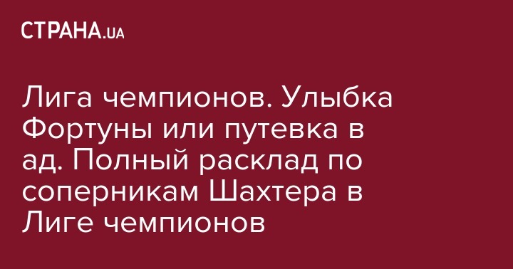 Чемпион Украины, донецкий "Шахтер" в Лиге чемпионов будет выступать в группе F. Соперниками нашей команды стали - "Манчестер Сити" ( с командой Пепа Гвардиолы играли в прошлом сезоне - Прим.Ред.), "Лион" и "Хоффенхайм".