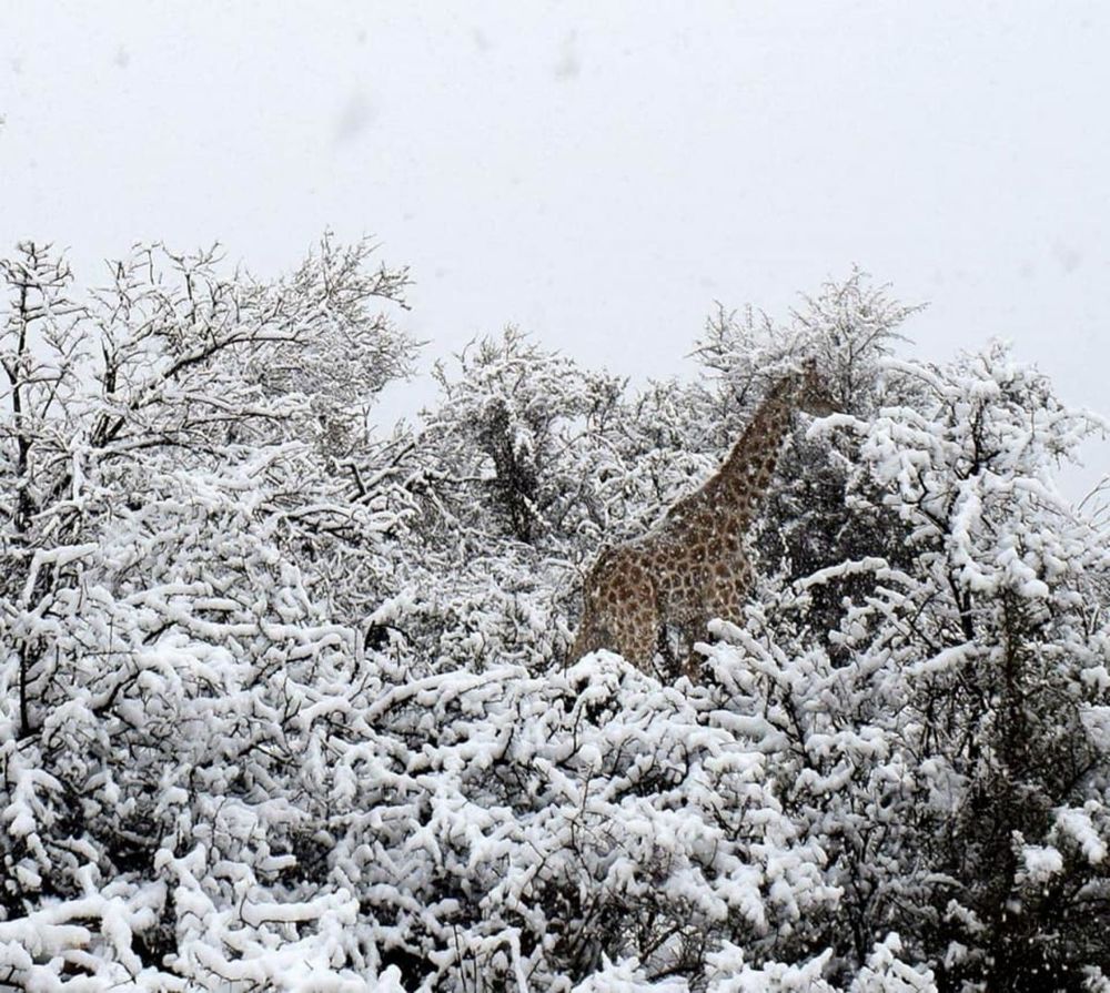 В ЮАР пришла зима. Слоны и жирафы гуляют по заснеженным джунглям. Видео