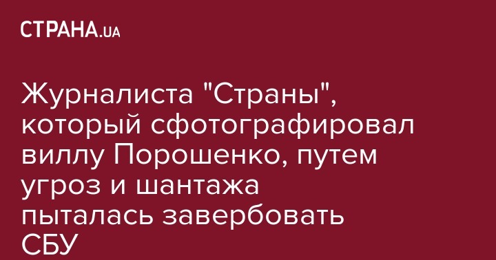 Журналиста "Страны", который сфотографировал виллу Порошенко, путем угроз и шантажа пыталась завербовать СБУ