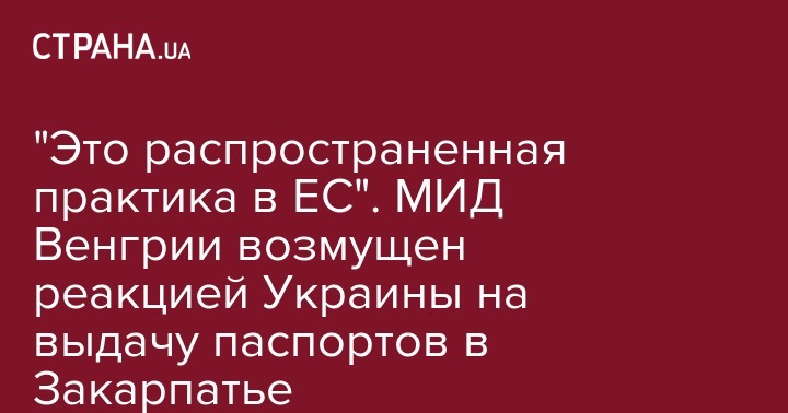 "Это распространенная практика в ЕС". МИД Венгрии возмущен реакцией Украины на выдачу паспортов в Закарпатье