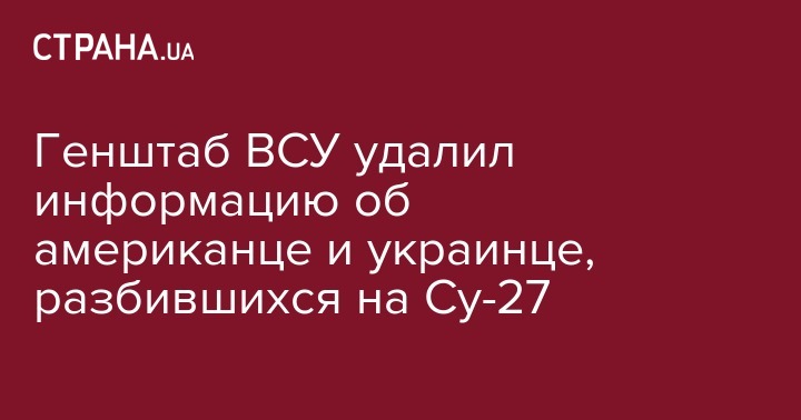 Пресс-служба Генштаба Вооруженных сил Украины изменила свое сообщение об авиакатастрофе Су-27УБ. Из текста была изъята информация о принадлежности пилотов самолета к Воздушным силам ВСУ и Нацгвардии США,.
