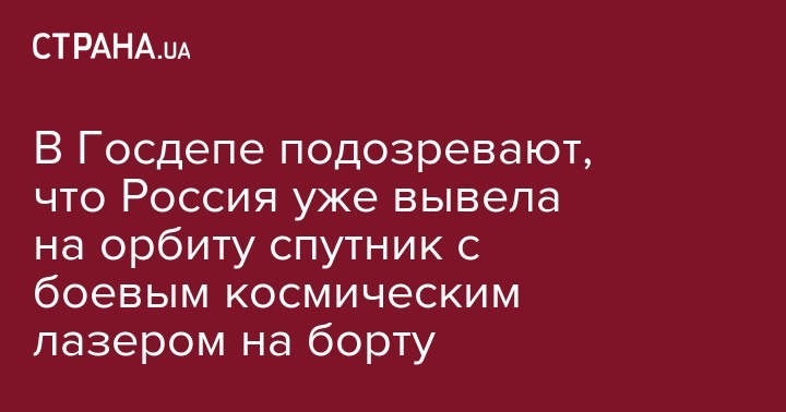В Госдепе подозревают, что Россия уже вывела на орбиту спутник с боевым космическим лазером на борту