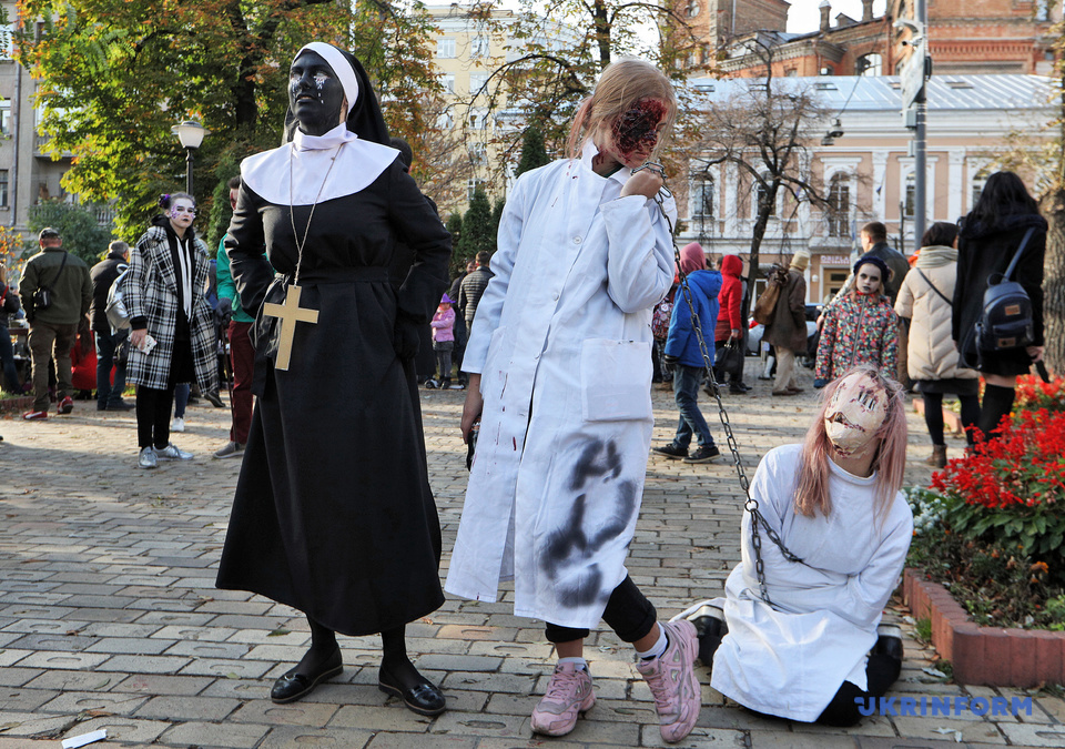 По Киеву в честь Хэллоуина прошли парадом зомби, ведьмы и мертвецы. Фото