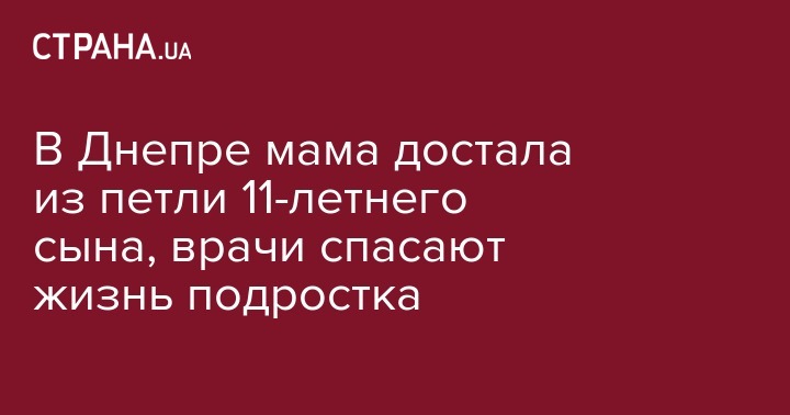 В Днепре мама достала из петли 11-летнего сына, врачи спасают жизнь подростка