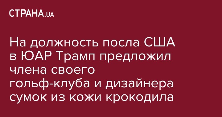 На должность посла США в ЮАР Трамп предложил члена своего гольф-клуба и дизайнера сумок из кожи крокодила