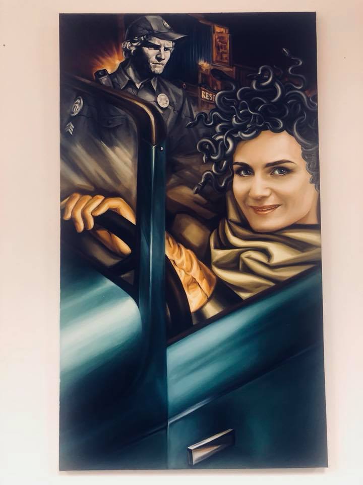 С виртуального молотка за $1000 ушло произведение искусства, на котором изображена сама Крюкова со змеями вместо волос (как у Медузы Горгоны) и патрульный полицейский. Сама Крюкова назвала его "олицетворением системы".