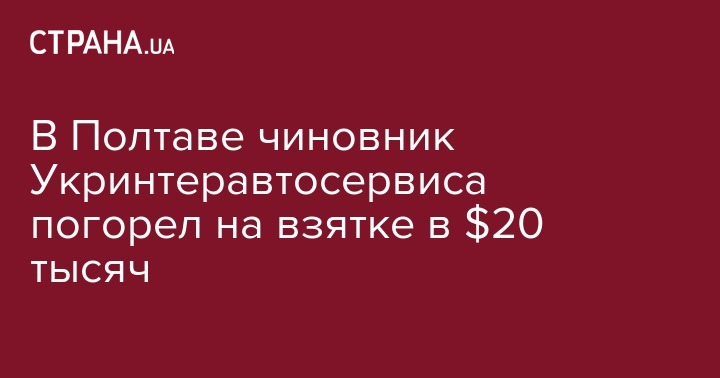 В Полтаве чиновник Укринтеравтосервиса погорел на взятке в $20 тысяч