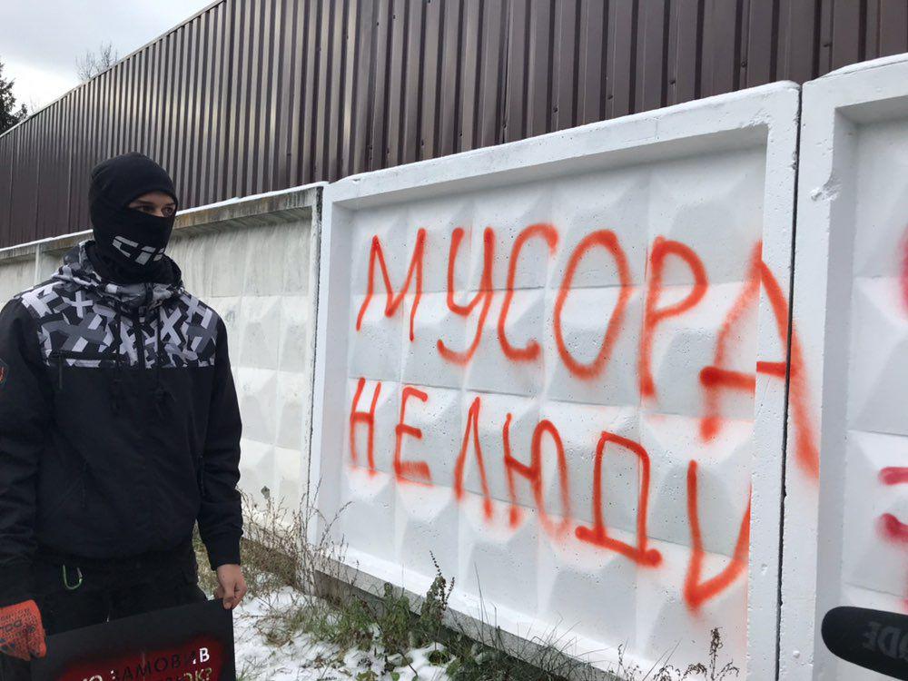 "Аваков – мусор и вор". В Киеве к покрытому надписями дому главы МВД принесли мусорник для министра. Фото и видео