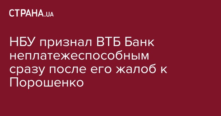 НБУ признал ВТБ Банк неплатежеспособным сразу после его жалоб к Порошенко