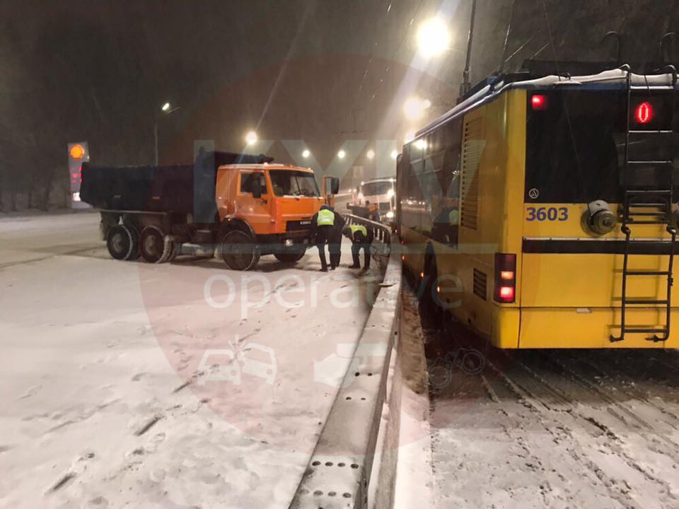 Фура врезалась в отбойник и задела троллейбус на улице Телиги в Киеве. Фото и видео