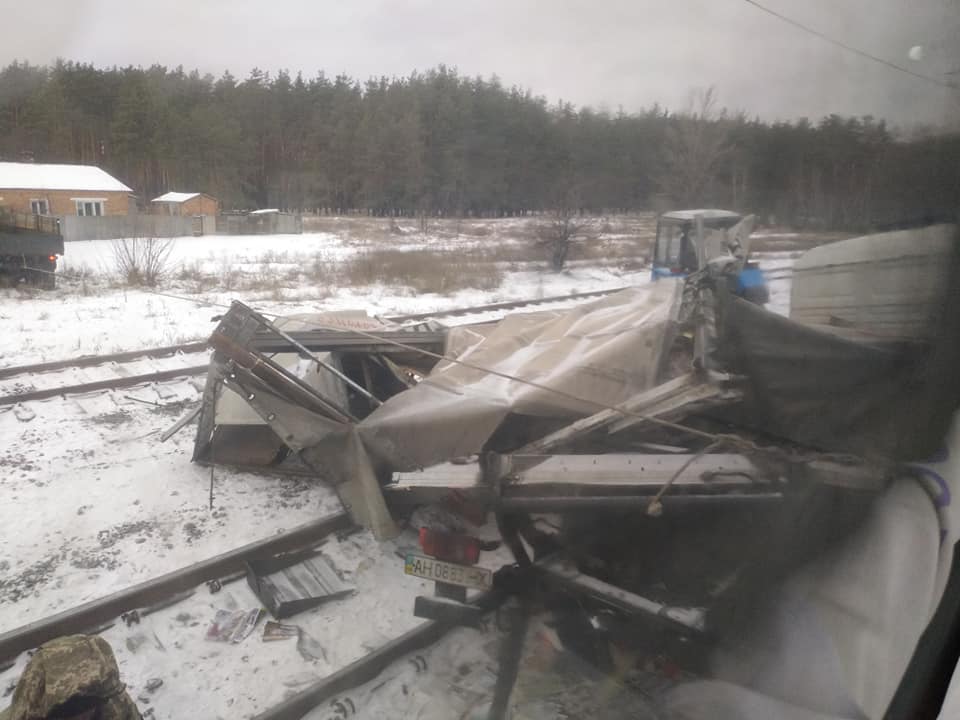 Под Харьковом поезд снес застрявшую на рельсах фуру с книгами. Фото