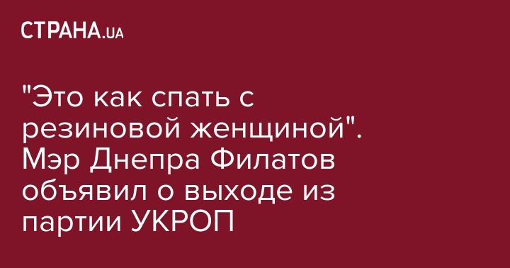 "Это как спать с резиновой женщиной". Мэр Днепра Филатов объявил о выходе из партии УКРОП