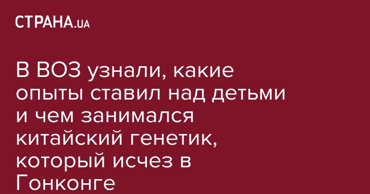 В ВОЗ узнали, какие опыты ставил над детьми и чем занимался китайский генетик, который исчез в Гонконге