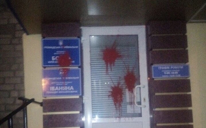 В Кременчуге националисты из С14 облили краской приемную Юрия Бойко
