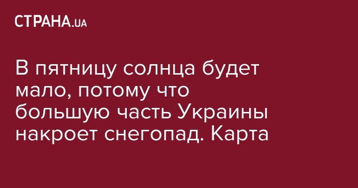 В пятницу солнца будет мало, потому что большую часть Украины накроет снегопад. Карта