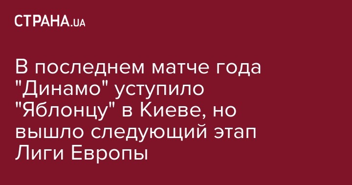 В последнем матче года "Динамо" уступило "Яблонцу" в Киеве, но вышло следующий этап Лиги Европы