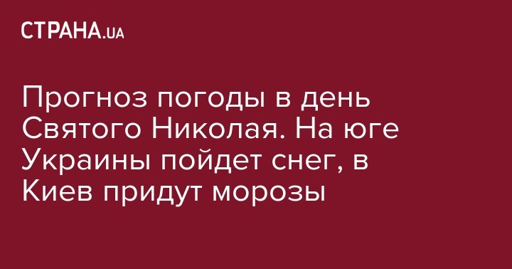 Прогноз погоды в день Святого Николая. На юге Украины пойдет снег, в Киев придут морозы