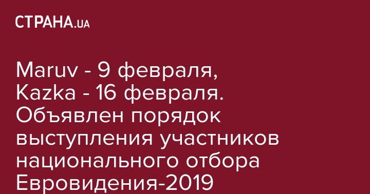 Maruv - 9 февраля, Kazka - 16 февраля. Объявлен порядок выступления участников национального отбора Евровидения-2019