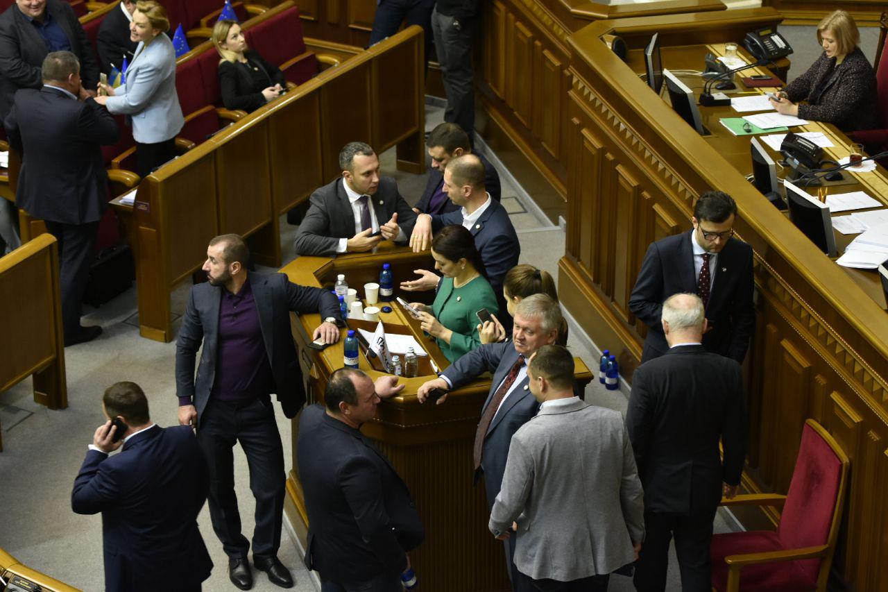Тем временем остальные нардепы не сильно озабочены блокадой. Депутаты разговаривают с коллегами или читают, а возможно и что-то смотрят.