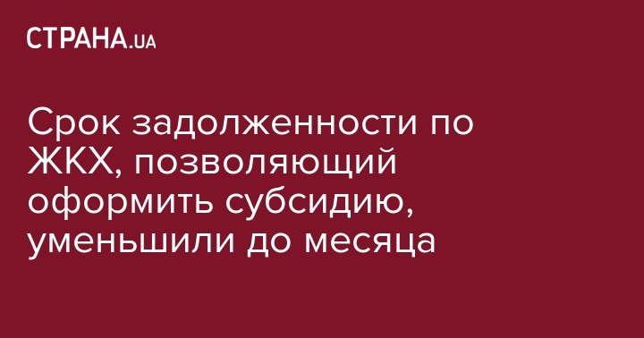 В Кабмине уменьшили с двух до одного месяца максимальный срок просроченной задолженности по оплате ЖКХ, при которой разрешено назначение субсидий. Об этом сообщает "Интерфакс-Украина".