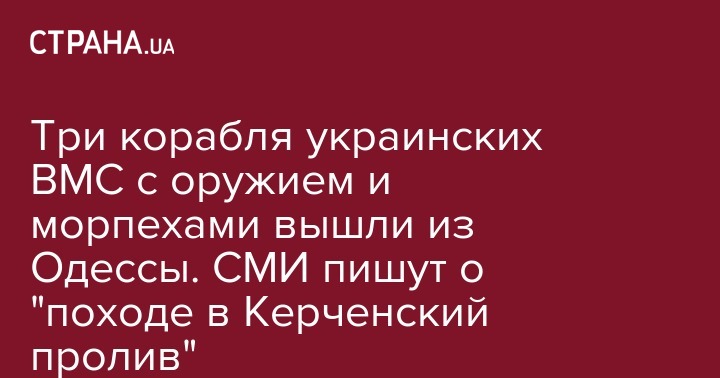 Три корабля украинских ВМС с оружием и морпехами вышли из Одессы. СМИ пишут о "походе в Керченский пролив"