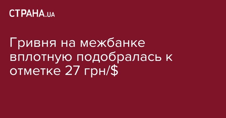 Гривня на межбанке вплотную подобралась к отметке 27 грн/$