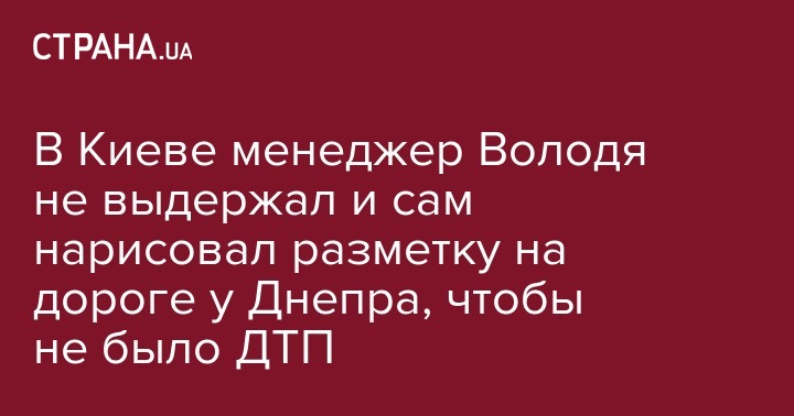В Киеве менеджер Володя не выдержал и сам нарисовал разметку на дороге у Днепра, чтобы не было ДТП