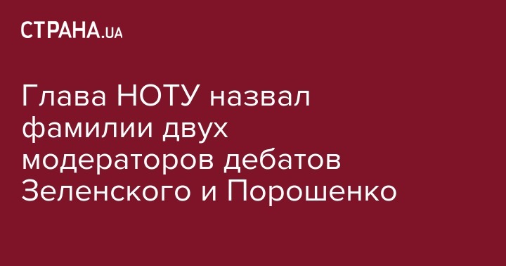 Глава НОТУ назвал фамилии двух модераторов дебатов Зеленского и Порошенко