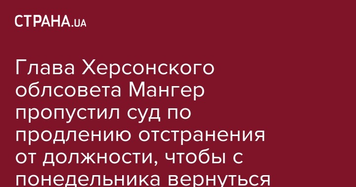 Глава Херсонского облсовета Мангер пропустил суд по продлению отстранения от должности, чтобы с понедельника вернуться на работу - активисты