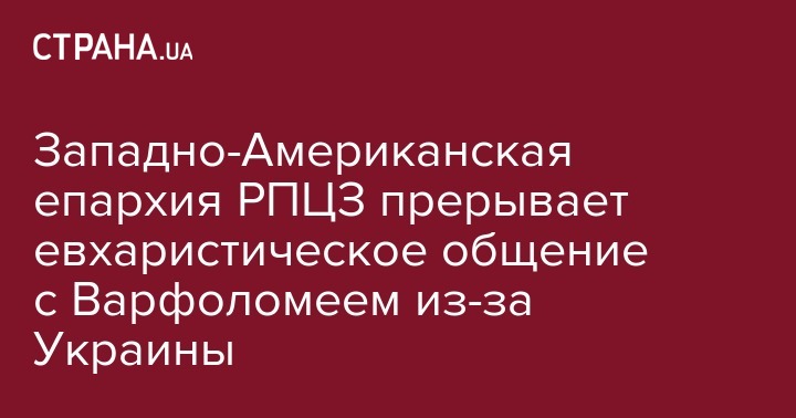 Действия Константинопольского патриархата по Украине не являются каноническими, поэтому Западно-Американская епархия Русской Православной Церкви Заграницей (РПЦЗ) прерывает с ним евхаристическое общение. Об этом сказано в официальном обращении участников совещания духовенства Западно-Американской епархии, опубликованном 11 апреля на официальном сайте РПЦЗ.