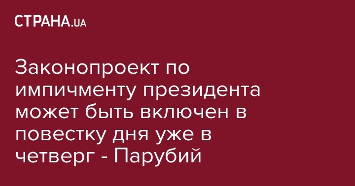 Законопроект по импичменту президента может быть включен в повестку дня уже в четверг - Парубий