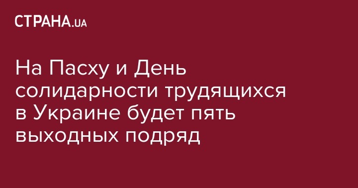 На Пасху и День солидарности трудящихся в Украине будет пять выходных подряд