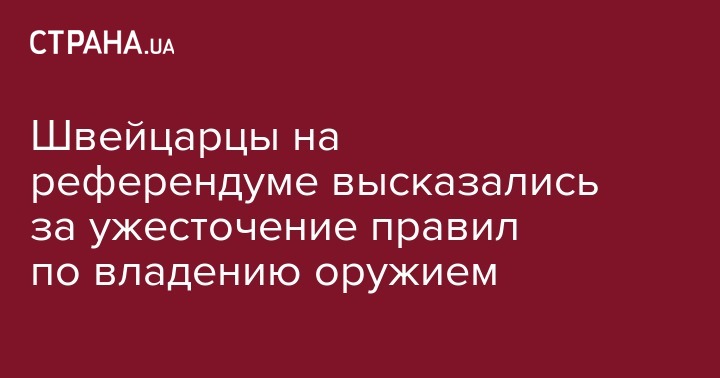 По предварительным данным, около двух третей швейцарцев на референдуме высказались в пользу ужесточения законов, регулирующих владение оружием. Таким образом граждане Швейцарии одобрили новые правила, усложняющие покупку полуавтоматического оружия. Кроме того, полиции будет легче выяснять происхождение конкретной единицы оружия.