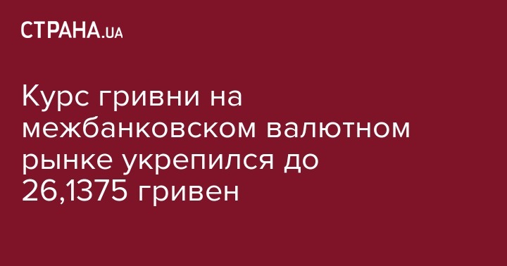Курс гривни на межбанковском валютном рынке укрепился до 26,1375 гривен