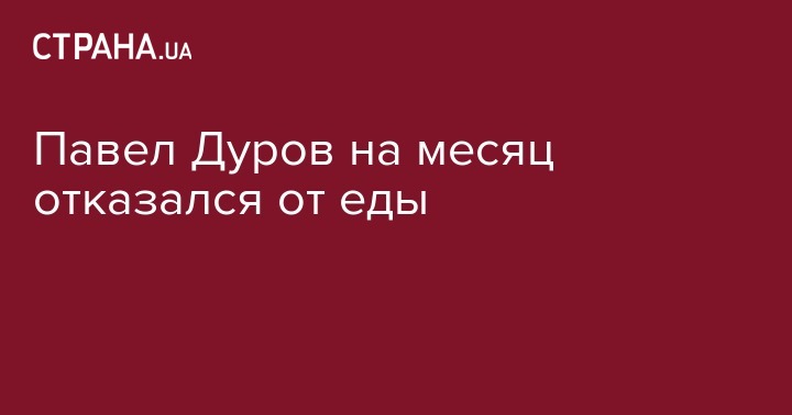 Создатель мессенджера Telegram Павел Дуров откажется от еды. Об этом он в своем канале. Указывается, что голодать Дуров планирует месяц.