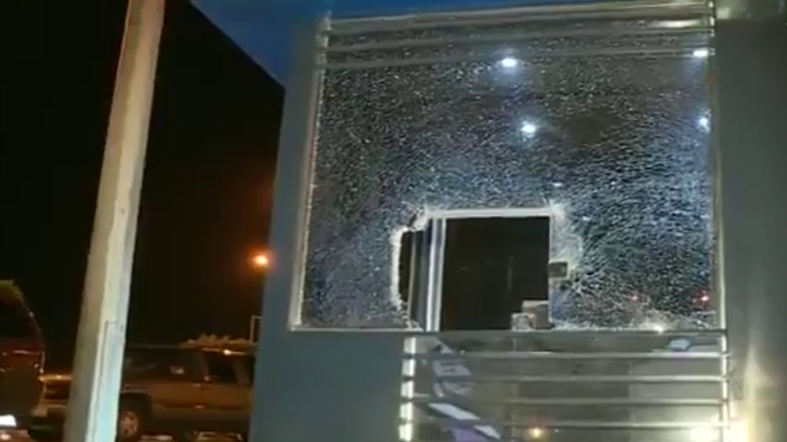 Удар пришелся на парковку аэропорта. В результате этого повреждены множество автомобилей - в них разбиты окна.