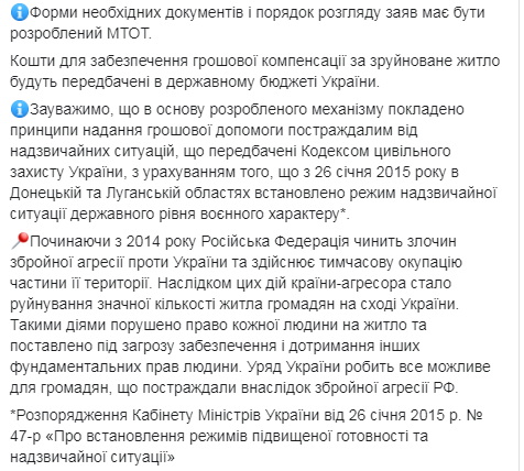 Для получения компенсации пострадавшие должны подать заявления и документы в специально созданные комиссии при областных госадминистрациях, которые будут принимать решение о предоставлении денежной компенсации.