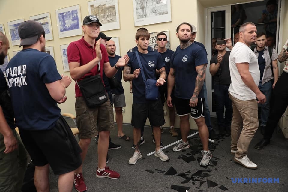 Появились фото с погрома Укринформа неизвестными в футболках "Традиция и порядок"