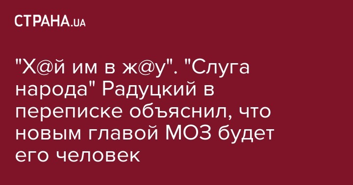 "Х@й им в ж@у". "Слуга народа" Радуцкий в переписке объяснил, что новым главой МОЗ будет его человек