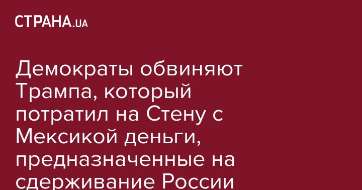 Демократы обвиняют Трампа, который потратил на Стену с Мексикой деньги, предназначенные на сдерживание России