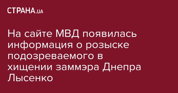 На сайте МВД появилась информация о розыске подозреваемого в хищении заммэра Днепра Лысенко