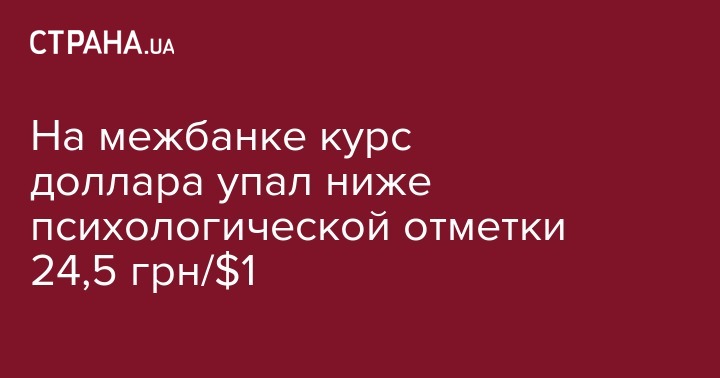 На межбанке курс доллара упал ниже психологической отметки 24,5 грн/$1