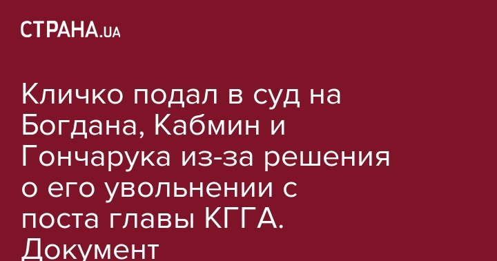 Кличко подал в суд на Богдана, Кабмин и Гончарука из-за решения о его увольнении с поста главы КГГА. Документ